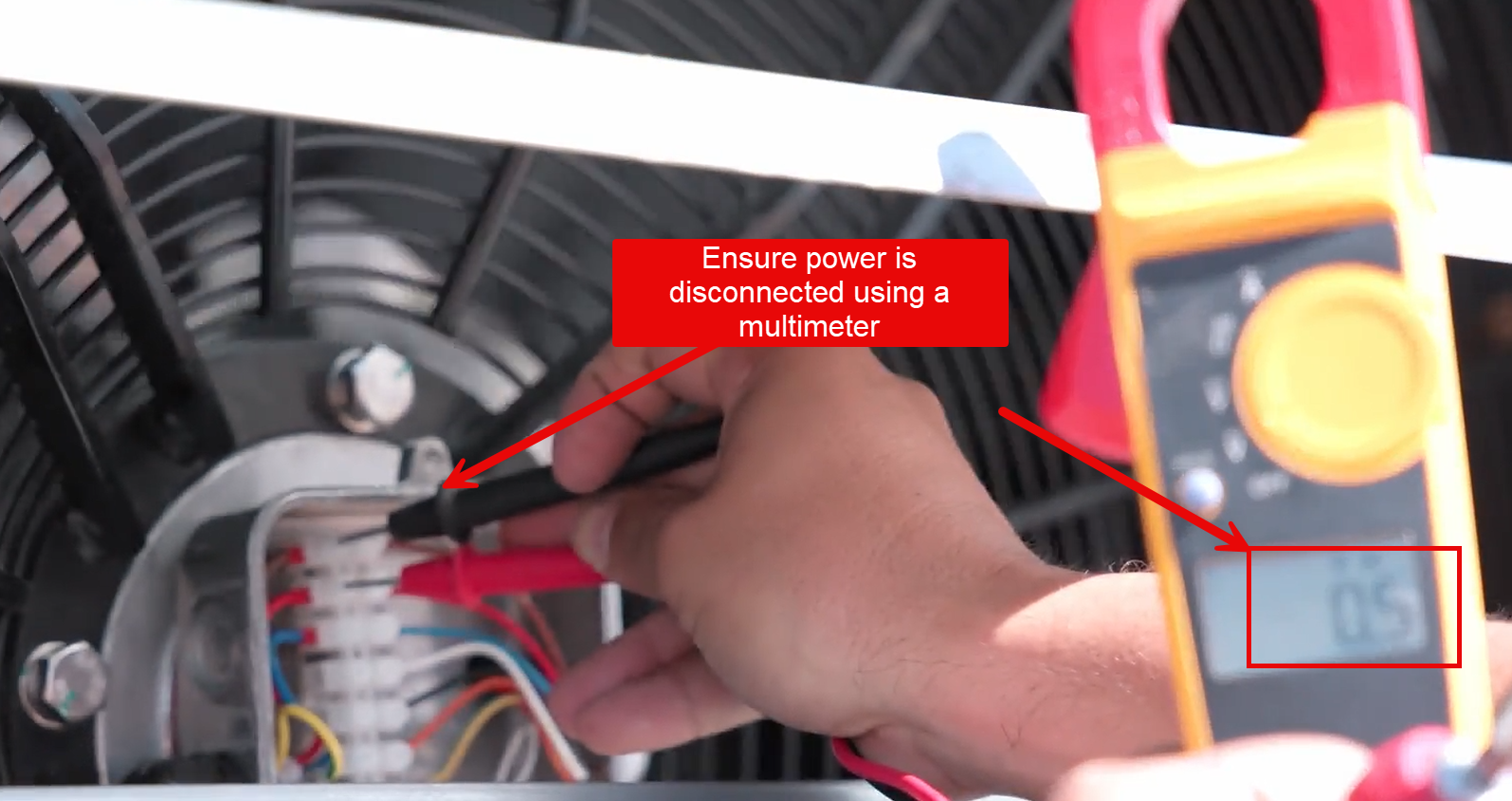 7) Ensure power to the fan is disconnected using a multimeter