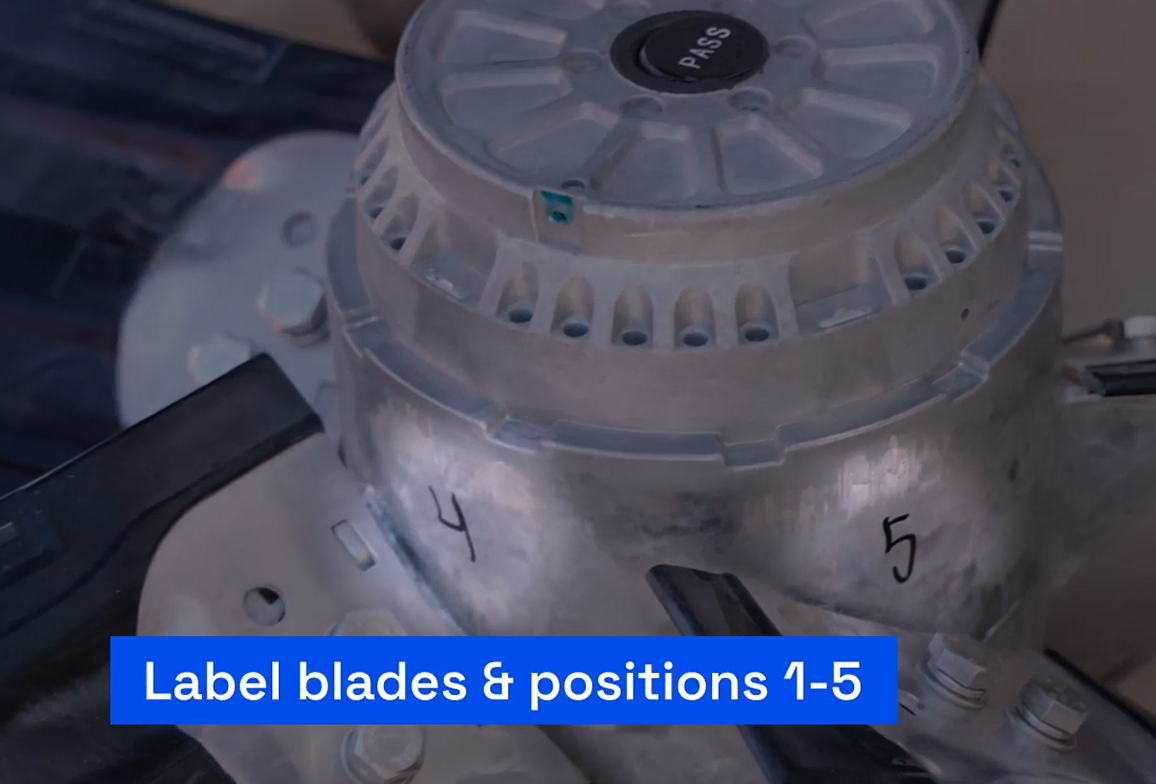 11) Before removing the motor, the best practice is to number the blades AND THE positions on the motor 1 through 5. Then remove the blades.