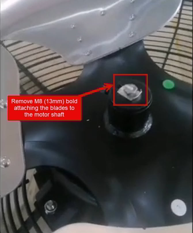 11) Remove the blades from the motor and set aside. This will be installed on the new motor