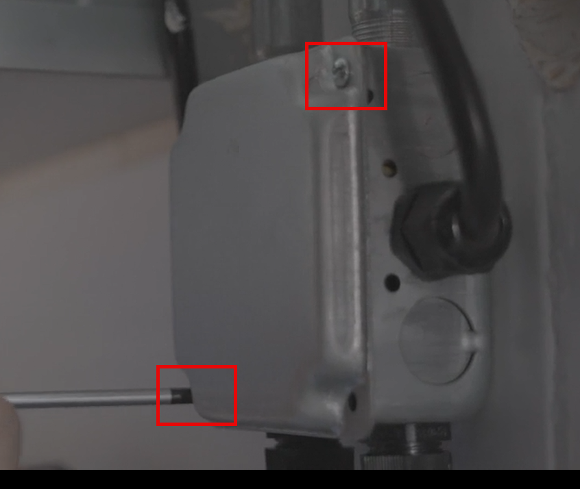 From inside the container, unscrew the 2 Phillips head screws on the junction box
