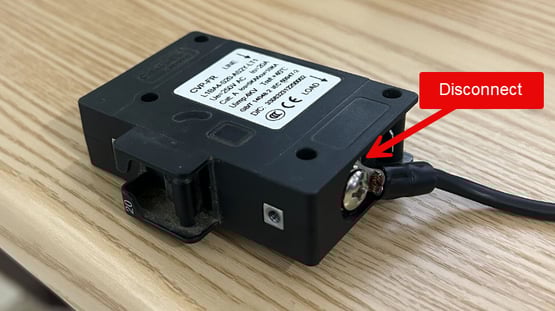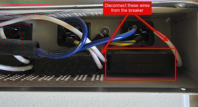 4) Once the screws are removed, the wires connected to the breaker can be accessed easier. Ushing a Phillips screwdriver, disconnect the wires from the breaker and remove the breaker