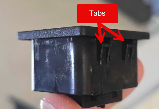 3) Once wires are reconnected, install outlet by pushing in until the tabs engage