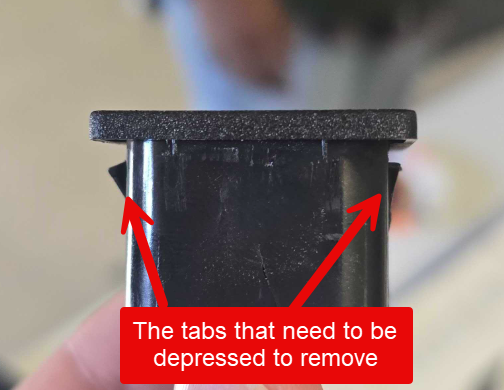 7) Once all wires are disconnected, depress the tabs on the top and bottom of the outlet to remove. The outlet comes out from the front of the PDU