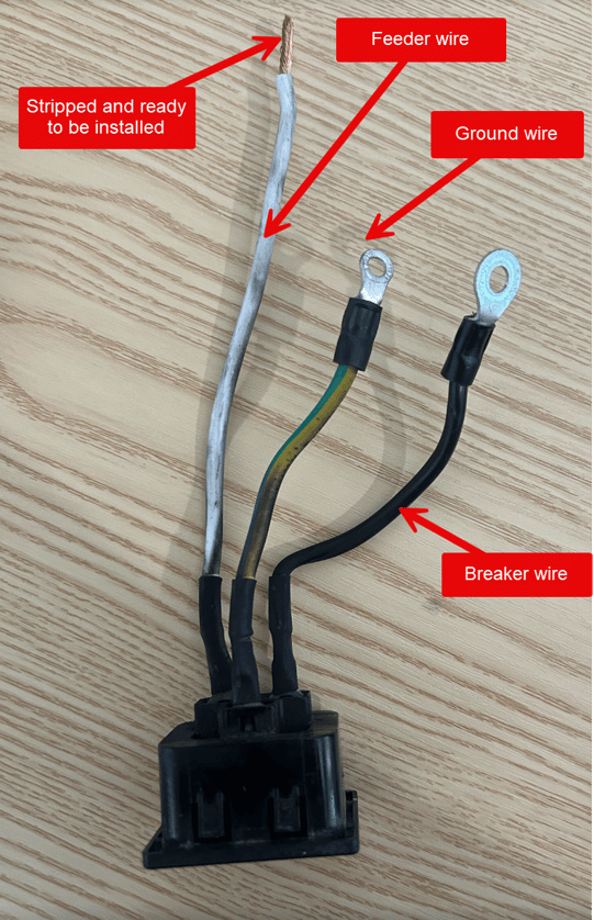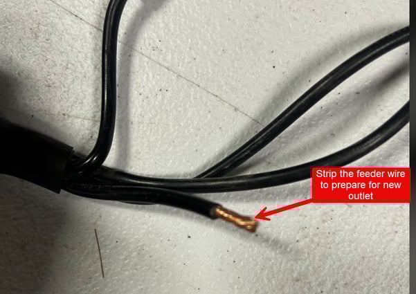 6) Strip the feeder wire to prepare for the new outlet