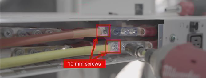 Remove termination screws (10mm) connecting feeder wires to bus bar. Ensure safe keeping of any hardware (screws, nuts, and/or washers)