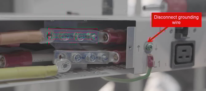 Remove the grounding wire connected to the Phillips screw on the front of the PDU