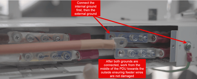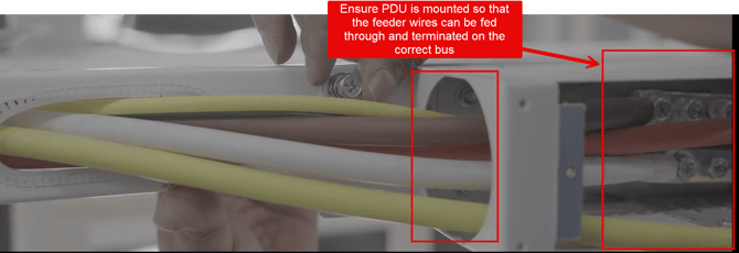 For the other side, ensure the feeder wires are inserted into the PDU and have the correct length to be able to terminate on the bus bar