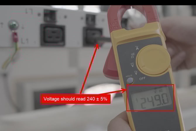 If no voltage, recheck terminations on PDU bus bar. Proceed with caution as power is now flowing to the PDU