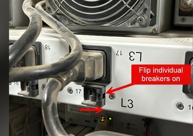 7) Plug in miner cables and then turn on individual miner breakers on the PDU